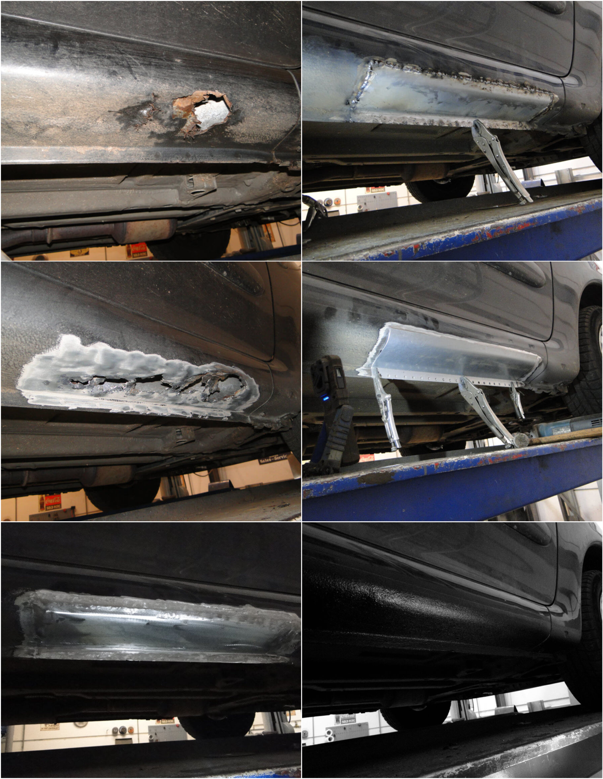 In onderstaand foto’s ziet u hoe grondig ik uw auto aan ga pakken. Als voorbeeld voor mijn werkwijze dient de auto van een klant die bij mij kwam met een auto die afgekeurd was vanwege roest in de dorpel.